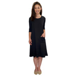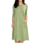 Classic 100% Cotton A-Line Dress with 3/4 Sleeves