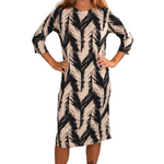 Experience timeless style with this versatile knee-length shift dress. Made from a high-quality viscose-spandex blend, this dress offers both comfort and sophistication for any occasion. The straight silhouette provides a flattering fit - dress runs true to size, or go up a size for a more relaxed fit.