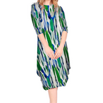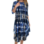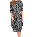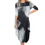 Flowing Midi Dress with 3/4 Sleeves and Dramatic Drape