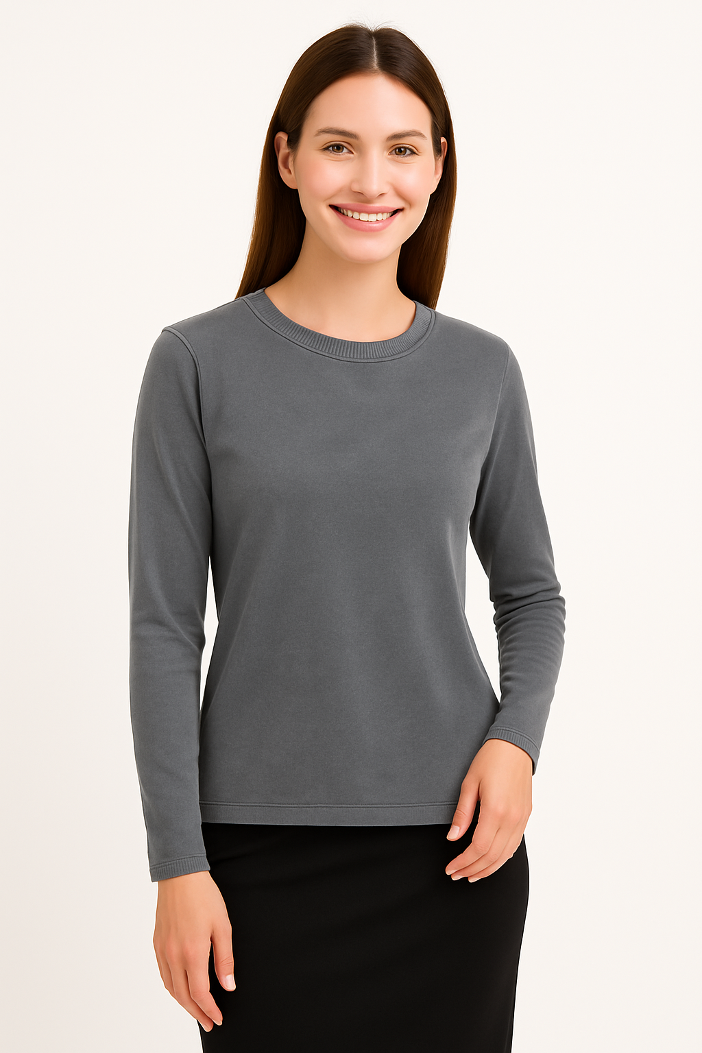 Modest Cotton Long Sleeve T-Shirt with Side Slits – Crew Neck