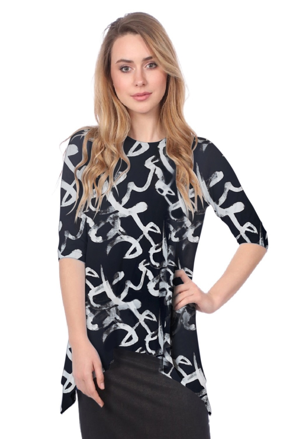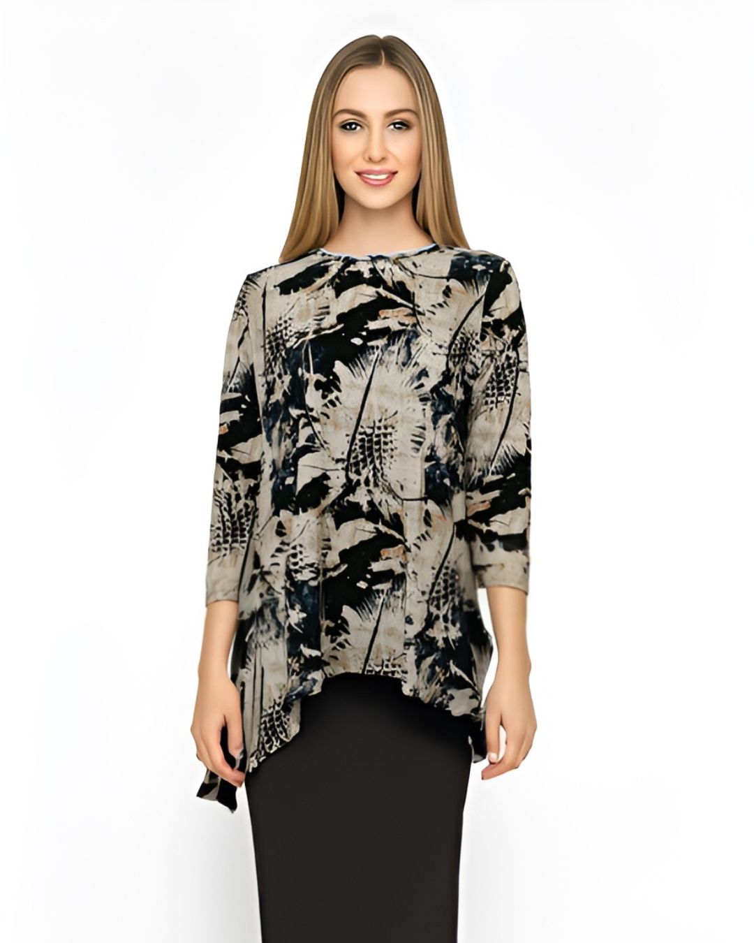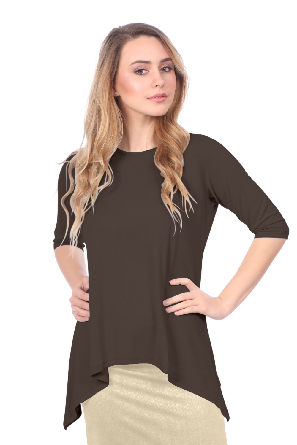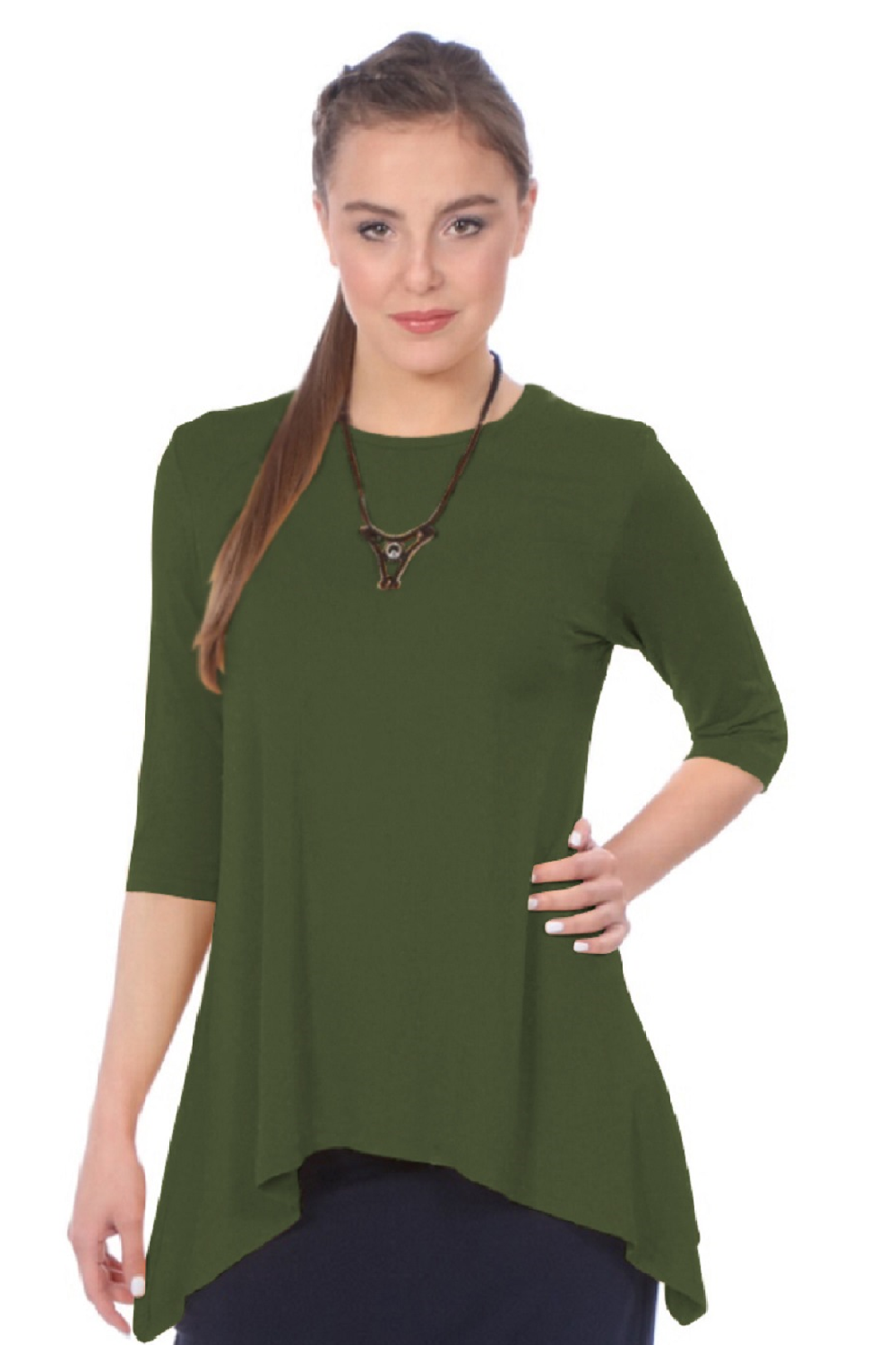 Modest Handkerchief Tunic Top - 3/4 Sleeve Comfort Flow Design
