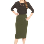 Mid-Calf Pencil Skirt in Cotton Spandex – No Slits