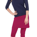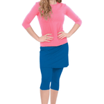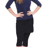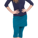 Get the best of both worlds with our mid-thigh length skirt featuring attached Capri-length leggings. This 16-17" skirt paired with 3/4 length leggings gives you the freedom to move while maintaining modesty. The stretchy elastic waistband sits comfortably at your natural waist, and the hidden internal pocket will hold a key securely.