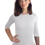 Experience effortless modesty with our innovative 3/4 sleeve bodysuit shell, designed specifically for women who value both style and coverage. This thoughtfully crafted layering piece features a high jewel neckline that covers above the collarbone and sleeves that extend past the elbow, ensuring consistent coverage throughout your day. The seamless, tucked-in design eliminates the frustration of constantly adjusting your base layer, allowing you to move confidently through your busy schedule.