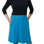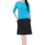 Embrace active living with our versatile A-line athletic skort, thoughtfully designed for the modest dresser. This premium piece features a graceful knee-covering skirt paired with comfortable longer shorts that reach to the top of the knee, ensuring complete coverage during any activity. The lightweight polyamide-spandex construction delivers exceptional performance both in and out of the water, while two secure zippered pockets provide convenient storage for your essentials.
