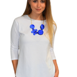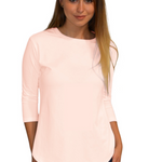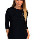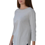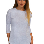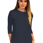 Discover your new wardrobe essential in this beautifully designed cotton tunic that perfectly balances style with modesty. The thoughtfully crafted high-low design features a loose-fitting torso with an extended back hem that drops 2.5-3 inches lower than the front, ensuring proper coverage during all activities. The fitted three-quarter length sleeves provide full elbow coverage, while the ribbed crew neckline ensures reliable collarbone coverage, creating a polished, put-together look.