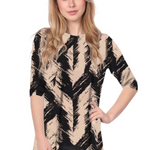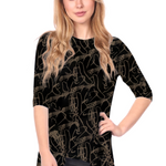 A flattering style our bestselling handkerchief tunic top is thoughtfully designed for the modern modest dresser. The graceful shark bite hem creates a flattering silhouette complemented by a subtle hi-lo hemline. The higher neckline sits comfortably at the collarbone, paired with three-quarter sleeves for a polished look that transitions seamlessly from casual to dressy occasions.