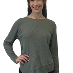 Modest High-Neck Waffle Tunic | Long Sleeve Comfort Top with Asymmetric Hem