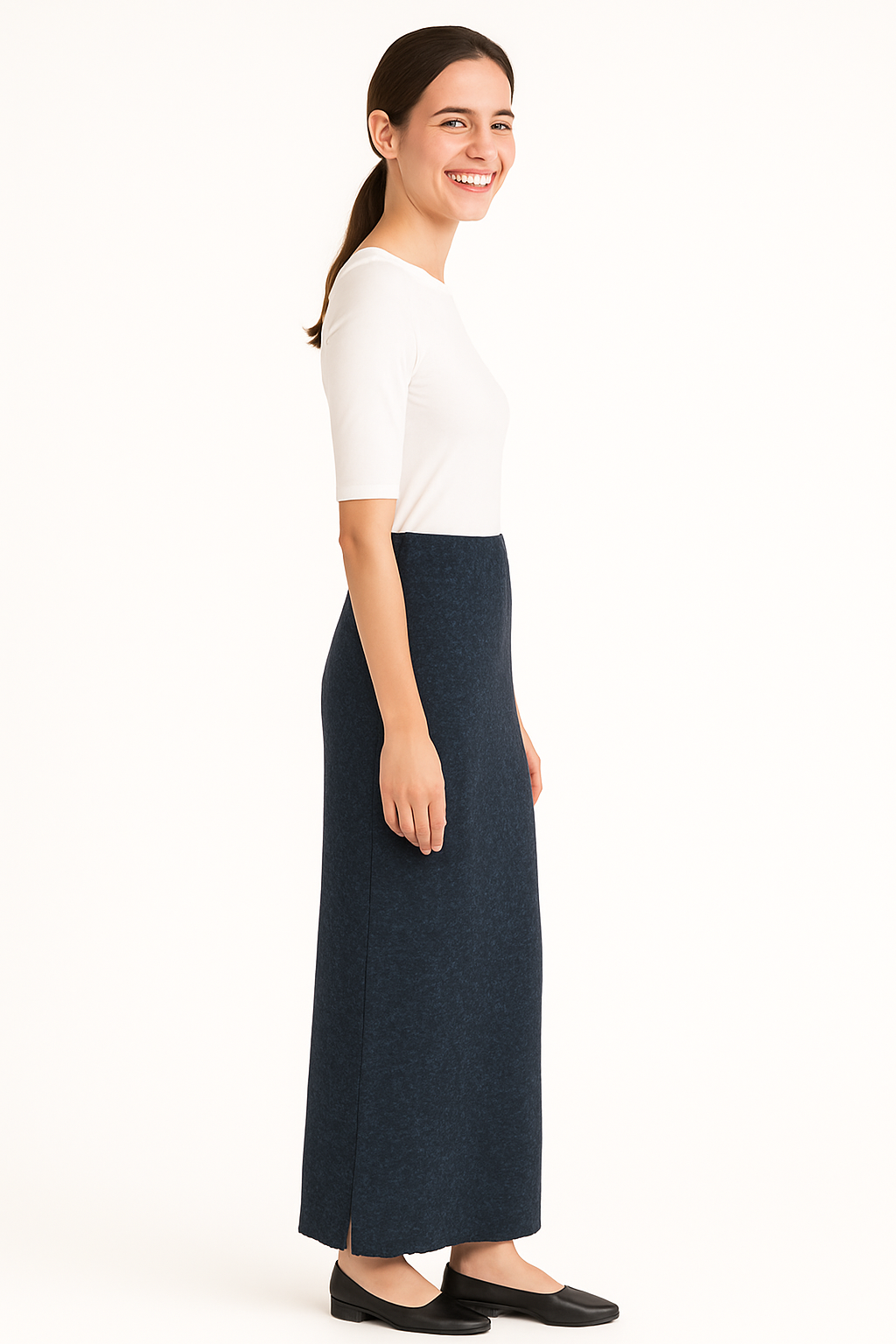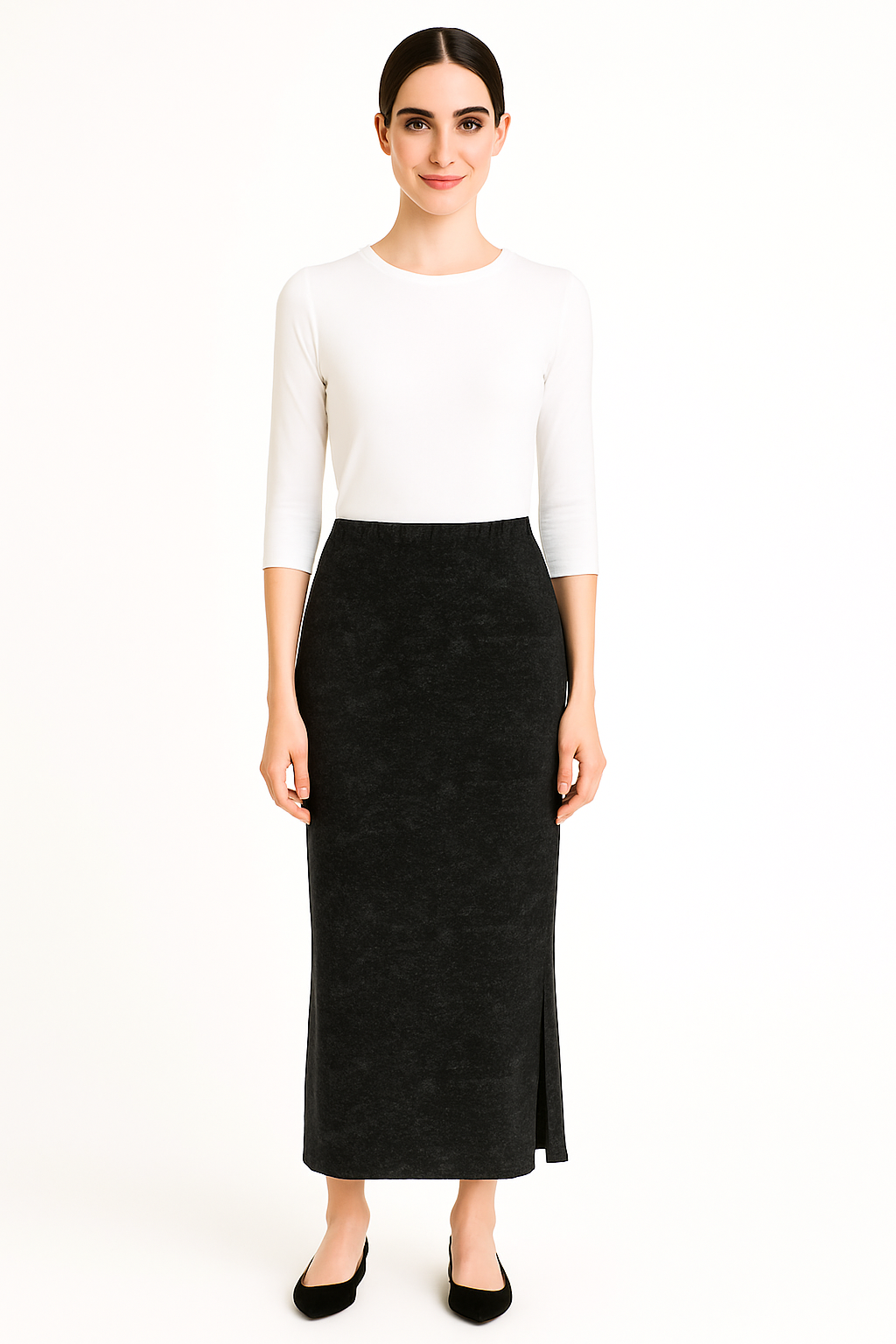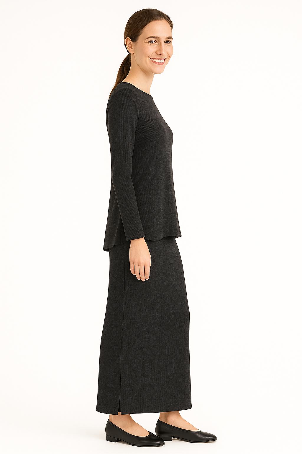Designed for women who refuse to compromise between modest style and everyday comfort, this tapered rib knit maxi skirt offers the best of both worlds. The soft cotton-blend fabric—65% cotton, 32% polyester, and 3% spandex—features a subtle muted tie-dye pattern that adds visual interest without overwhelming your look. The structured rib knit creates a refined silhouette that flatters without clinging, and the unlined design keeps you cool and comfortable all day long. Strategic side slits positioned well below the knee provide subtle movement and styling flexibility while keeping you covered exactly how you want to be.