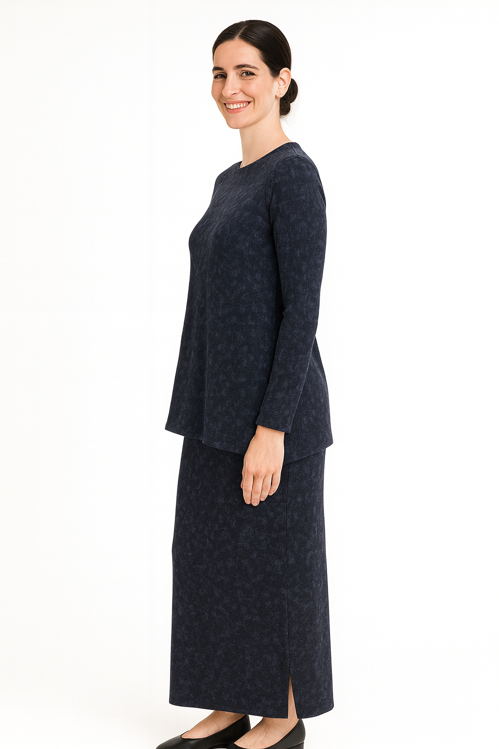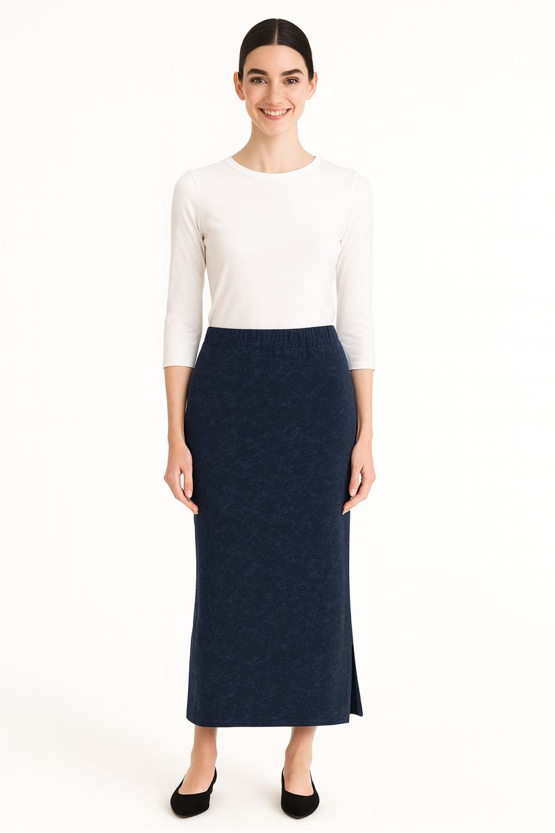 This skirt works beautifully as a standalone piece or paired with our Modest Long Sleeve Handkerchief Tunic Top in Ribbed Knit—crafted in the same muted tie-dye fabric for a coordinated, intentional outfit. The pattern is subtle enough to transition seamlessly with any top in your wardrobe, giving you endless styling possibilities. The pull-on waistband means effortless dressing, while the quality cotton-blend fabric ensures this skirt becomes a go-to piece season after season.