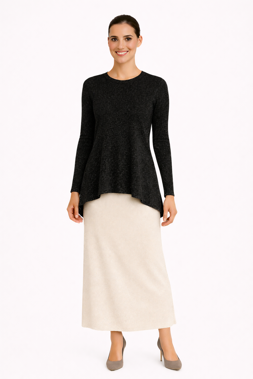 Modest Long Sleeve Sparkle Rib Handkerchief Hem Tunic