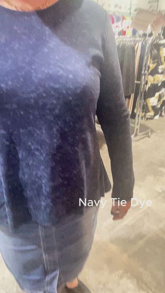 Modest Long Sleeve Handkerchief Tunic Top - Muted Tie-Dye Ribbed Knit