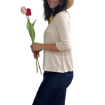 We start with premium materials selected for real comfort. Our signature stretch fabric moves with you while keeping its shape all day long. No more constant adjusting or tops that look worn out after washing.