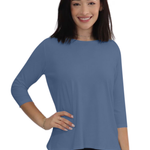 This easygoing t-shirt starts with a modest crew neck that sits at the collarbone and practical 3/4 length sleeves. You'll love how the roomy, relaxed fit and smart side slits let you move freely while running errands or spending time with family. The soft viscose-spandex blend keeps you cool and comfortable through all your daily activities.