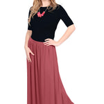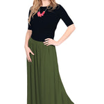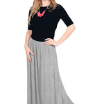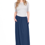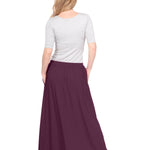 Women's Flowing Long Maxi Skirt with Pockets - Full Covered Elastic Waist