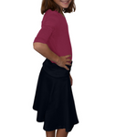 This playful midi skater skirt combines comfort and style perfect for active girls. The fold-over waistband makes it easy for her to customize the length - wear it folded for knee-length or unfolded for a longer style. Made from soft, breathable cotton with gentle stretch, this skirt keeps its shape through playground adventures and washing, staying comfortable for school, play, and special occasions.