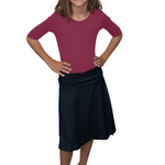 Girls Midi Skater Skirt with Fold-Over Waistband in Cotton Spandex
