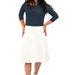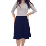 Discover timeless elegance merged with modern comfort in our signature A-line skirt. Thoughtfully crafted from premium cotton-spandex blend fabric, this versatile skirt offers the perfect combination of structure and flexibility while ensuring comfortable coverage at the knee. The pull-on waistband provides a smooth, comfortable fit that transitions effortlessly from workplace to weekend activities.