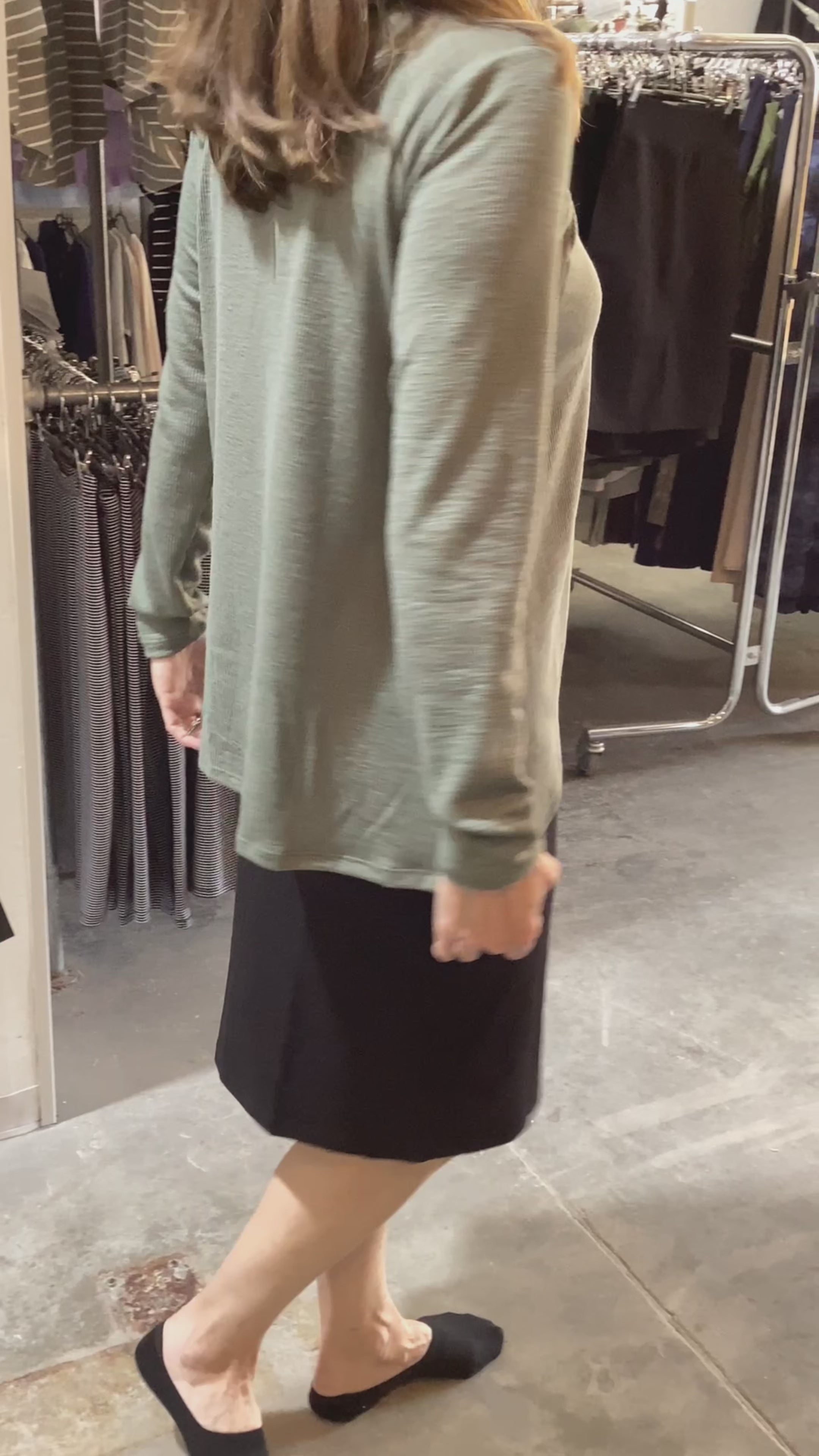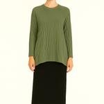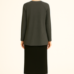 The hemline curves gracefully in front while the straight back sits longer for complete coverage when sitting or bending. Layer it over a shell, pair it with your favorite bottoms, or wear it on its own—this tunic adapts easily to your lifestyle. Available in three versatile colors—Sage Green, Warm Brown, and Dark Grey—in sizes Small to 2XL.
