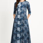 Fitted Bodice Maxi Summer Dress with 3/4 Sleeves with Pockets