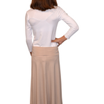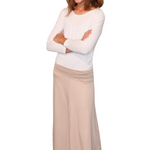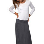 A flowing A-line maxi skirt designed especially for girls who want both style and comfort. The fold-over waistband lets her adjust the length as she grows, making this skirt a wardrobe favorite. The natural viscose blend stretch fabric is soft and lightweight, perfect for active days at school or special occasions. This versatile skirt pairs easily with her favorite tops and keeps her looking put-together whether she's playing with friends or attending family events.