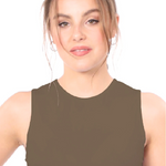 Modest Neck Cropped Layering Shell - Cotton Spandex Sleeveless Tank