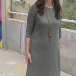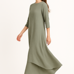 Modest Maxi Dress - Three Quarter Sleeve Soft Cotton Crinkle Fabric Double Layer Design