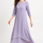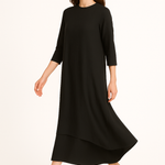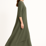 Our flowing maxi dress combines comfort and elegance in a premium cotton-spandex crinkle fabric. The double layer style provides complete coverage in a graceful silhouette that covers the ankles. A relaxed fit complements the natural drape of the fabric, while three quarter length sleeves offer perfect year-round coverage.