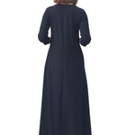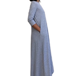 A-line Cotton Ribbed Maxi Dress - Modest Neckline, 3/4 Sleeves and Pockets