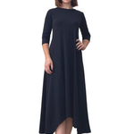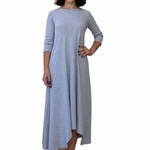 This relaxed-fit maxi dress is made from 100% cotton ribbed fabric, offering weight and natural stretch for year-round comfort. The design features a gentle A-line cut, modest neckline and 3/4 sleeves. Two practical on-seam pockets add convenience while maintaining clean lines. The unique hi-lo hem design drops 4 inches longer in the back for added style. From casual weekends to social gatherings, this dress delivers both easy style for any occasion.