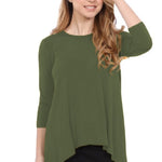 Hi-Lo Flowing 3/4 Sleeve Modest Tunic Top