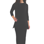 Discover our best-selling tunic style in a fresh take in a soft blend of viscose, polyester, and spandex. This wide-ribbed tunic combines style with modesty while the distinctive handkerchief hem creates clean lines, providing extra coverage at the hips. A modest banded crew neckband and 3/4 sleeves make this tunic an ideal choice for work or semi-formal occasions.