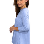 Popular Wide-Ribbed Handkerchief Hem Tunic with 3/4 Sleeves