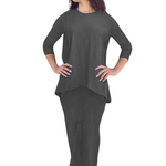 This well-made tunic stands out with its flowing handkerchief hem that adds graceful movement to your look. The textured (variegated) viscose-spandex fabric feels soft against your skin and stretches comfortably as you move through your busy day. The neckline sits right at your collarbone, while the three-quarter sleeves make this tunic a practical choice for both casual outings and dressier events.