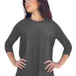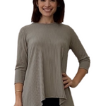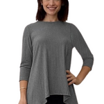 Textured Ribbed Handkerchief Tunic with 3/4 Sleeves