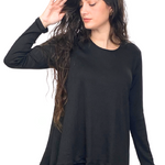 Womens Long Sleeved Ribbed Hi Lo Tunic Top