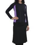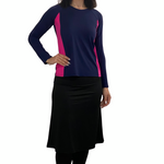 Be active your way in our modest and modern athletic midi skirt with attached ankle length leggings. Made with high quality Italian fabric featuring 4-way stretch and comfortable elastic waistband that stays in place. The A-line design falls gracefully below the knee, while the attached leggings provide complete coverage. Our quick-drying polyamide-spandex fabric is chlorine resistant with UPF 50 protection, and is easy to wash. Ideal for cooler weather or sun burn protection. Style meets function in this skirt perfect for swimming, running, working out, or everyday activities. Ideal for the pool, beach, and outdoor sports.