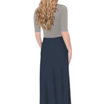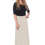 Our flowing A-line maxi skirt combines timeless style with freedom of movement. The distinctive fold-over waistband allows you to customize the length to your preference. The natural viscose blend stretch fabric offers a lightweight feel that moves beautifully with every step. The skirt's clean lines and floor-length make it ideal for both daily wear and special occasions. Free from slits, and works well with a variety tops and accessories.