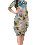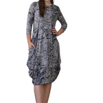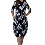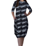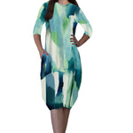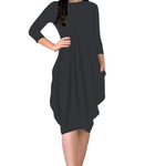 3/4 Sleeve Tulip Cocoon Dress - Mid-Calf Length with Pockets