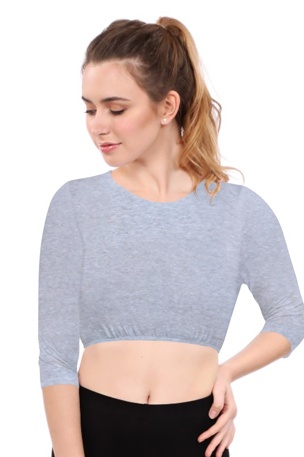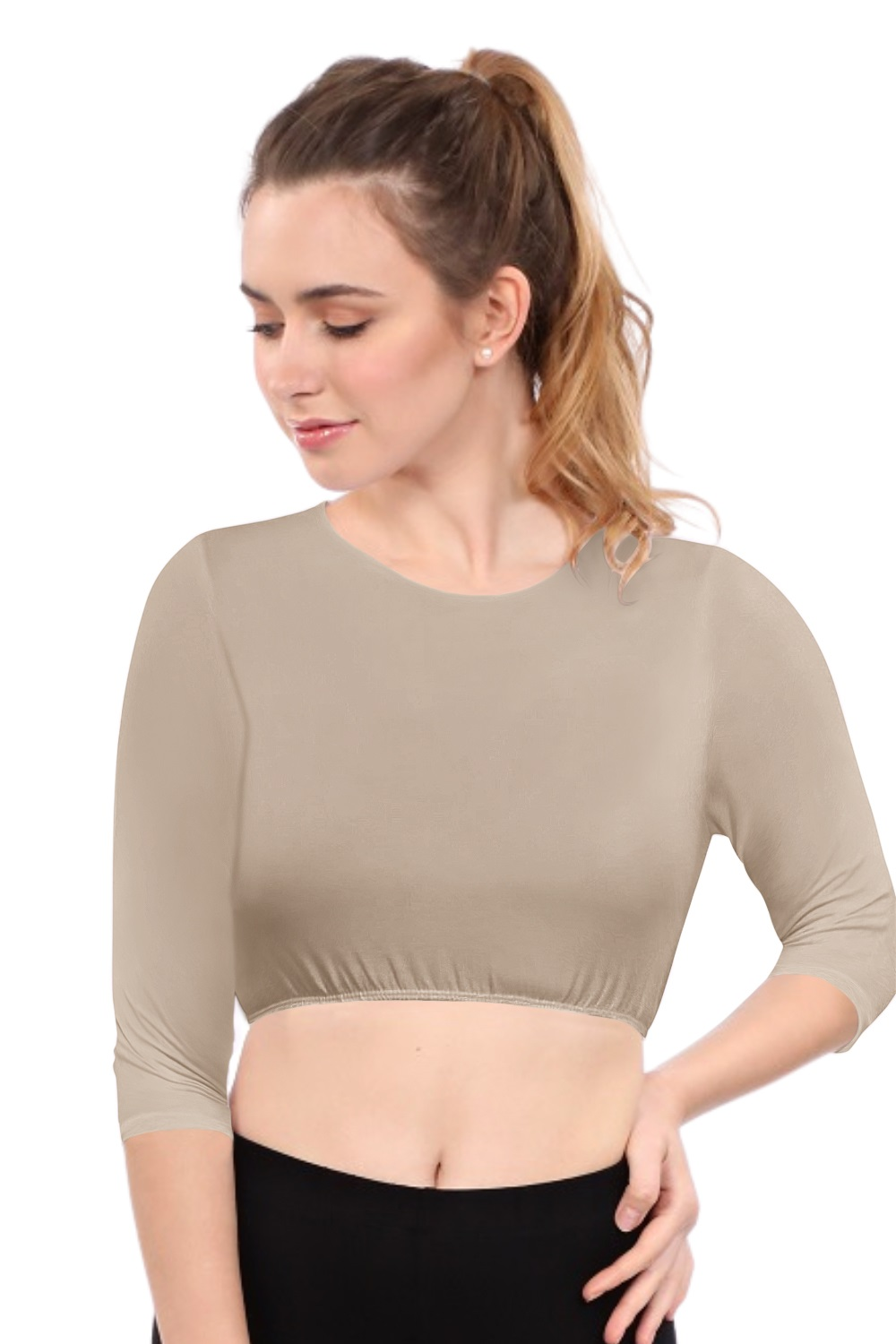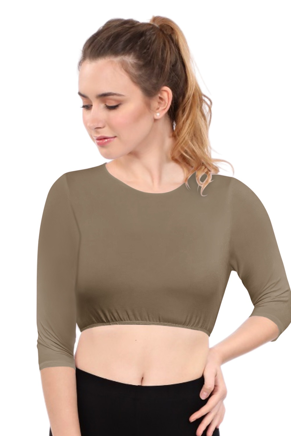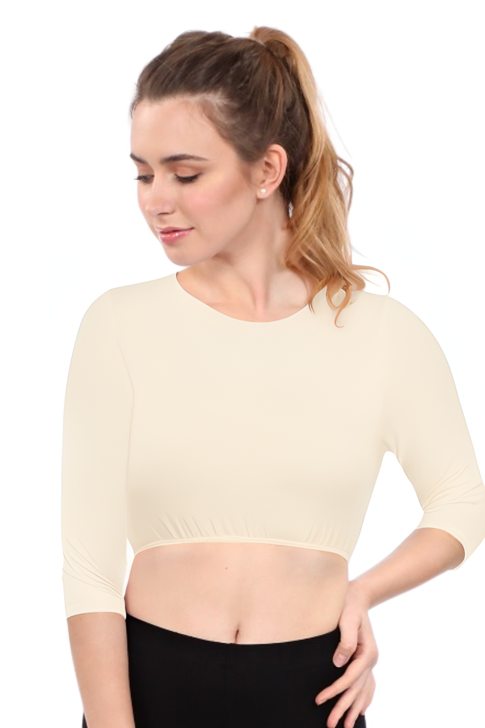 Modest Neck Cropped Layering - Cotton Spandex 3/4 Sleeve Shell Top