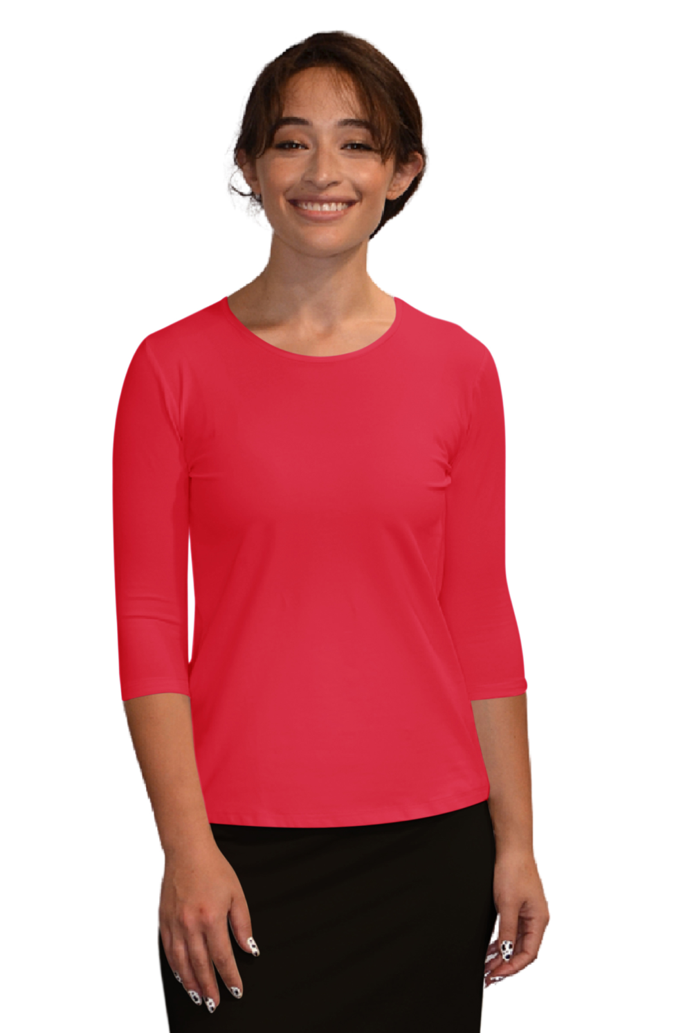 Essential 3/4 Sleeve Modest Crew Neckline Shell - Versatile Layering Top