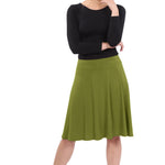 Knee Length A-Line Skater Skirt with Full Elastic Waist