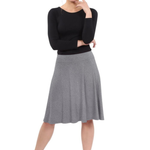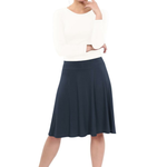 Experience all-day comfort in this soft, stretchy skater skirt that combines an A-line silhouette with an easy pull-on 3/4 inch elastic waistband. The 90% natural viscose and 10% spandex material is the same material we use for many of our layering tops and feels light against your skin while the full skirt drapes beautifully. A great every day skirt that can be dressed up for work or evenings. Unlined for maximum breathability, this skirt transitions effortlessly from casual to dressy occasions.