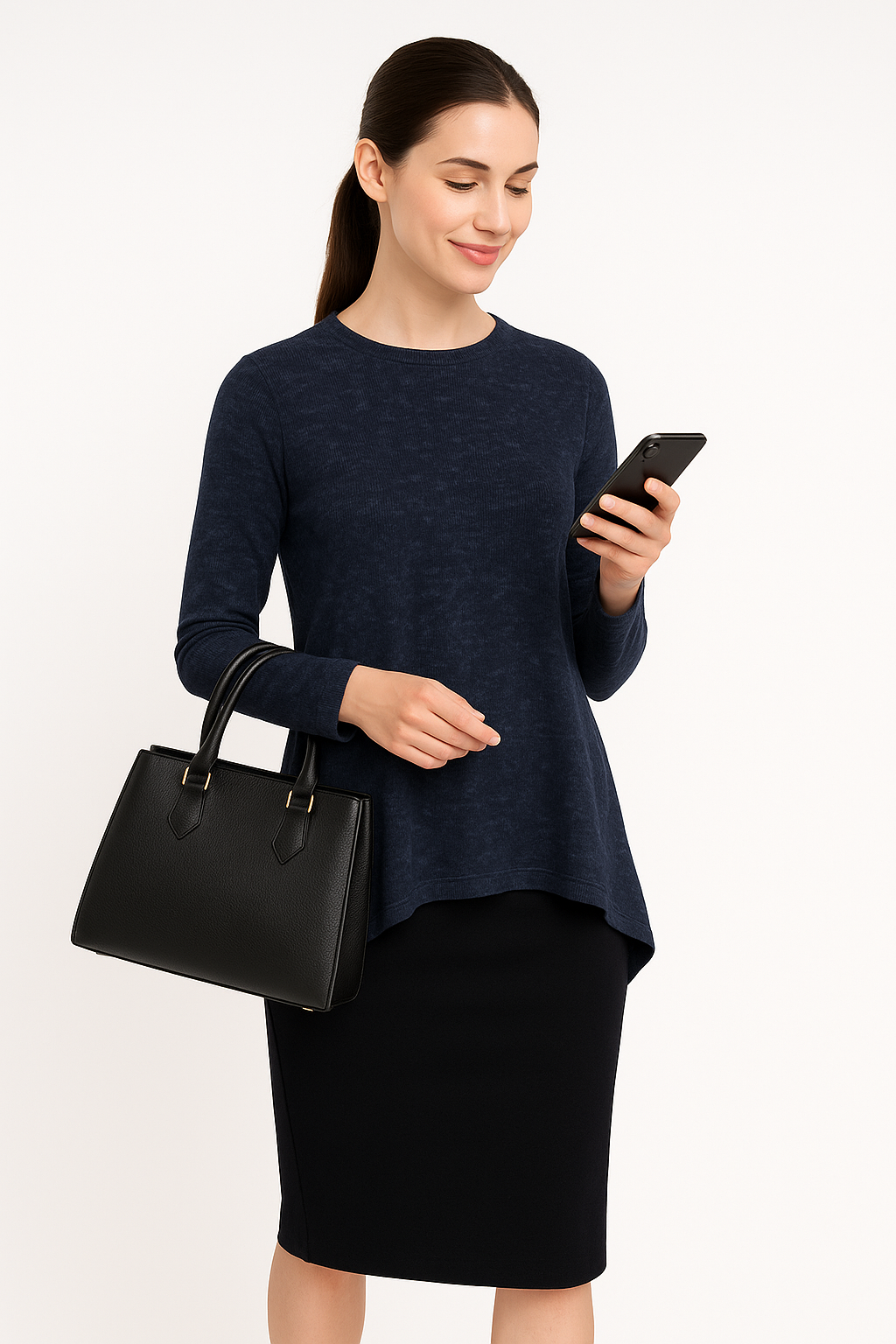 We start with premium materials selected for real comfort. Our signature stretch fabric moves with you while keeping its shape all day long. No more constant adjusting or tops that look worn out after washing.