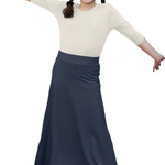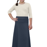 This flowing A-line maxi skirt keeps your little girl comfortable throughout her busy day. The smooth, seamless front stays neat during playtime, while the 1.25" elastic waistband moves with her from classroom to playground. Made from soft, stretchy fabric that's gentle on her skin, the ankle-length no-slit design lets her run, jump, and play with confidence.