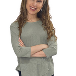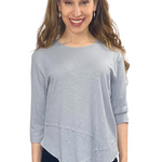 Make a sophisticated statement with our beautifully designed asymmetrical tunic, where modern style meets casual elegance. The ribbed fabric creates a flattering silhouette, anchored by a high neckline that covers the collarbone. The distinctive asymmetrical hemline features graceful points at both front and back, 3/4 sleeves and a relaxed fit for easy movement. The unique raw edge detailing adds a chic finishing touch, making this tunic perfect for work, outdoors or casual gatherings.