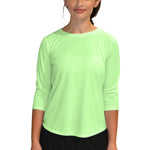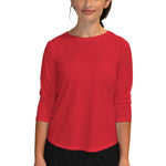 Discover our super lightweight high-performance fabric that combines breathability, moisture-wicking and quick-drying properties with UVF protection. The modest banded crew neckline provides ideal coverage. Features 3/4 length sleeves and curved hemline. Athletic fit; order up a size for a more relaxed fit. Ideal for exercise, running, yoga, tennis, and golf.