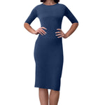 Modest Neckline Elbow-Length Sleeves Fitted Layering Dress