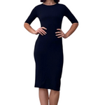 Elevate your wardrobe with this Elbow-length sleeve knee length layering dress. The sophisticated collarbone-covering neckline and elbow-length sleeves provides a smooth silhouette foundation under your favorite dresses, tunics, or skirts. The knee-length design suitable for most heights and there are no slits. Made from breathable viscose spandex in a lightweight knit blend, this fitted dress offers both modest comfort and versatility for all-day wear.