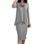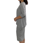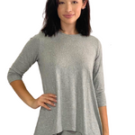 Our Ribbed knit handkerchief hem tunic combines style with comfort for your everyday wardrobe. The asymmetrical hem creates a flattering shape while ensuring proper coverage as you move through your day. The comfortable neckline sits right at the collarbone, while the three-quarter sleeves make this top practical for any season or occasion.